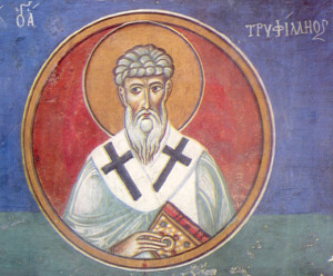 Τη ΙΓ’ του αυτού Μηνός (Ιουνίου), Μνήμη του Αγίου Τριφυλλίου, επισκόπου Λήδρας της Κύπρου.