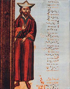 Ούτος λοιπόν κάμνωντας πολλαίς φοραίς αγρυπνίαν εις τον Ναόν της Θεοτόκου της επιλεγομένης των Βλαχερνών, πάλιν εγύριζεν εις τον Ναόν της αυτής Θεοτόκου τον εν τοις Κύρου. Όθεν και εκεί, εις τον εν τοις Κύρου δηλαδή Ναόν, διατρίβων ο Όσιος, έλαβε το χάρισμα, του να συντάξη και να μελουργήση τα του χρόνου όλου Κοντάκια. Εφάνη γαρ εις αυτόν κατ’ όναρ η κυρία Θεοτόκος, και δούσα εις αυτόν ένα τόμον χάρτου, τον επρόσταξε να φάγη εκείνον. Ανοίξας δε το στόμα του ο Όσιος, εφάνη ότι τον κατέπιε. Και λοιπόν έξυπνος γενόμενος, ανέβη επάνω εις τον άμβωνα, και άρχισε να ψάλλη το «Η παρθένος σήμερον τον υπερούσιον τίκτει». Έτυχε γαρ τότε να ήναι η εορτή των Χριστού Γεννών.