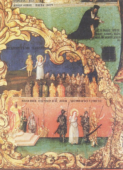Ανδρείαν και φρόνησιν συ κεκτημένη, σεμνή, ανδρείως κατεπάτησας όφιν αρχέκακον, Μαρίνα πανεύφημε ήσχυνας Ολυμβρίου τας Πικράς Τιμωρίας ηύφρανας Ασωμάτων τας χορείας αθλούσα, διό απαύστως πρέσβευε Χριστώ, εις το σωθήναι ημάς.
