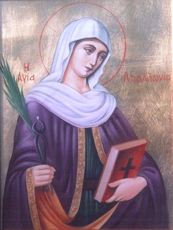 Σήμερα, 30η του μηνός Οκτωβρίου, η Αγία μας Εκκλησία εορτάζει την μνήμη και μιας ακόμη προστάτιδος των οδόντων, της οποίας η μνήμη έρχεται από την Δυτική Εκκλησία καθ’όσον μαρτύρησε κατά τους πρώτους χριστιανικούς αιώνες. Πρόκειται για την παρθενομάρτυρα Αγία Απολλωνία από την Αλεξάνδρεια της Αιγύπτου, την πατρίδα της παρθενομάρτυρος και πανσόφου νύμφης του Χριστού Αικατερίνας γι΄αυτό και είναι συχνές οι απεικονίσεις στην Δυτική Εκκλησία της Παναγίας με το Θείο Βρέφος μεταξύ των δύο Αγίων αυτών.