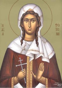 Τη ΚΣΤ’ του αυτού μηνός (Φεβρουαρίου), μνήμη της Αγίας ενδόξου Ισαποστόλου Μάρτυρος του Χριστού, Φωτινής της Σαμαρείτιδος.