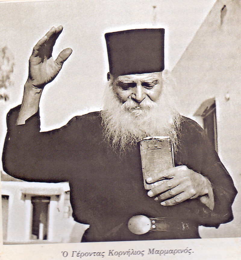 «Ο αδιάλειπτος προσευχόμενος και κάτοχος της νοερής ευχής Γέρων Κορνήλιος. ο όντως άνθρωπος του Θεού, ο ευλαβής λειτουργός, ο ενάρετος ιερομόναχος, ήταν χαρισματούχος πνευματικός, ένθεος καθοδηγητής και ιατρός ψυχών και σωμάτων, με την δύναμη της προσευχής και την ενέργεια της πίστεώς του. Ήταν πολύ αυστηρός στα σαρκικά αμαρτήματα και κανόνιζε ιδιαιτέρως τούς βλάσφημους και μέθυσους. Εν γένει ήταν άνθρωπος ταπεινός και υποχωρητικός, γεμάτος Αγάπη και ανεξικακία. Πάντα έσβηνε τις αντιπάθειες και τα μίση, ξεπερνούσε υπομονετικά τις ύβρεις, τούς διωγμούς και τις συκοφαντίες πού υπέστη και πρώτος ζητούσε την αποκατάσταση της αγάπης. Επίσης για τούς νέους (υποψηφίους κληρικούς και μη) επέμενε απαραιτήτως να πάνε στον στρατό να “ψηθούν” γιατί τότε έλεγε “καλείσαι ‘Έλλην πολίτης”. Τα ιδανικά της ψυχής του ήταν Χριστός και Ελλάδα».