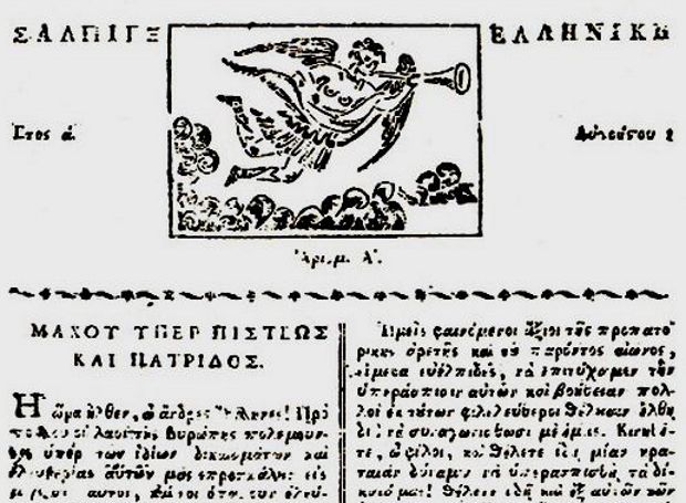 Εις τας παρούσας περιστάσεις της Ελλάδος, ότε το ελληνικόν γένος, μη υπομένον τον βαρύν της τυραννίας ζυγόν, τον οποίον έφερεν αναξίως αιώνας ολοκλήρους, απεφάσισεν υπό την προστασία της Θείας Προνοίας, να πιάση τα όπλα, διά να αναλάβη την οποίαν απώλεσεν αυτονομίαν, είναι αναγκαιοτάτη εφημερίς εις την Ελλάδα εκδιδομένη.