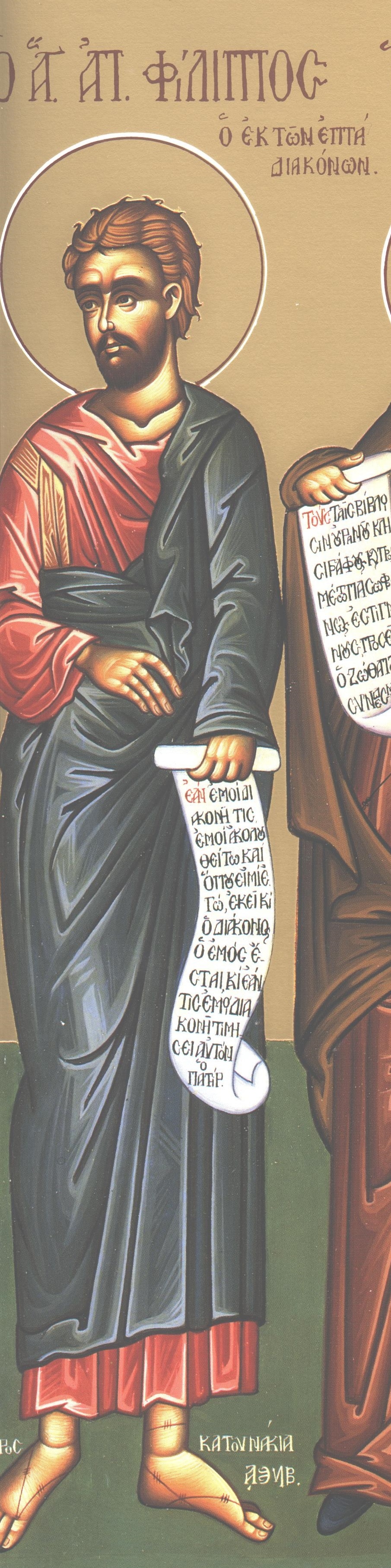 Μετά από το πρόβλημα που δημιουργήθηκε, οι δώδεκα Απόστολοι συγκάλεσαν το πλήθος των πιστών και τους είπαν: Δεν μας φαίνεται σωστό να αφήσουμε εμείς το κήρυγμα του λόγου του Θεού και να υπηρετούμε στα τραπέζια του φαγητού. Εξετάστε λοιπόν προσεκτικά και εκλέξτε από σας τους ίδιους επτά άνδρες που να έχουν καλή μαρτυρία από όλους και σύνεση και να είναι γεμάτοι από Άγιο Πνεύμα, «άνδρας εξ υμών μαρτυρουμένους επτά», για να επιτελούν τη διακονία αυτή. Κι εμείς θα αφοσιωθούμε αποκλειστικά στην προσευχή και στη διακονία του κηρύγματος.