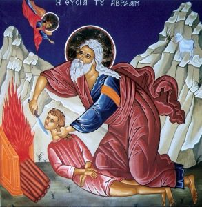 Πήρε λοιπόν τον μικρόν Ισαάκ και πήγε στο θυσιαστήριο. Μα τη στιγμή που σήκωσε το μαχαίρι, άγγελος Κυρίου τον κράτησε και του λέει: