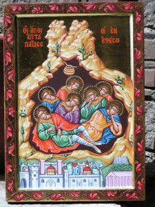 Όταν ξέσπασαν απηνείς διωγμοί κατά των Χριστιανών, οι επτά παίδες μοίρασαν την περιουσία τους στους πτωχούς, εγκατέλειψαν την πόλη και κρύφτηκαν σε μία σπηλιά μέχρι να τελειώσει ο διωγμός. Έτσι δεν θα αναγκάζονταν να αρνηθούν την πίστη τους. Όταν όμως αντιλήφθηκαν ότι οι διώκτες τους πλησίαζαν στο καταφύγιό τους, προσευχήθηκαν στο Θεό κατά την διάρκεια της νύχτας να πεθάνουν για να μην πέσουν στα χέρια των διωκτών τους. Ο Θεός εισάκουσε τη δέηση τους και το πρωί κοιμήθηκαν χωρίς να ξυπνήσουν. Ο βασιλιάς ανακάλυψε την κρυψώνα τους και διέταξε να φραγεί με μία μεγάλη πέτρα η είσοδος της σπηλιάς.