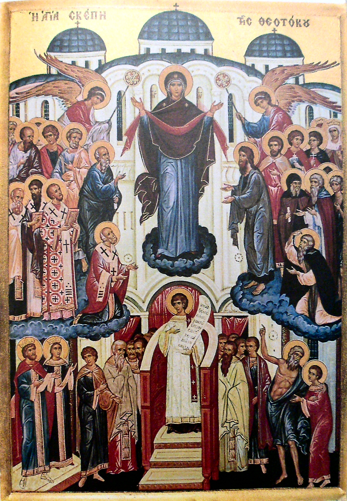 Ο Θεός παρέτεινε την προστασία του και τη βοήθειά του αυτή προς τους ανθρώπους όλων των εποχών με μιαν άλλη μορφή. Μια άλλη ολόφωτη νεφέλη φανερώθηκε, «τους πιστούς απαύστως επισκιάζουσα»: Η Υπεραγία Θεοτόκος, η πάναγνη μητέρα του, την οποία και συμβόλιζε η παλαιά εκείνη νεφέλη. Με την ανυπέρβλητη καθαρότητά της η Παναγία έγινε Θεομήτωρ, αλλά και μητέρα, προστάτης και βοηθός όλων των ανθρώπων. Θεία Σκέπη του κόσμου ολόκληρου. Κάθε πιστού ανθρώπου και λαού.