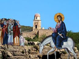 β) Καί στό κέντρο τῆς ἱερῆς σύναξης ὁ Νυμφίος τῆς Ἐκκλησίας, ὁ Σωτήρας Χριστός, ὁ ὁποῖος μπορεῖ νά εἰσέρχεται μέ ἐπευφημίες σήμερα στά Ἱεροσόλυμα, ἀλλά δέ θά ἀρνηθεῖ σέ λίγες ἡμέρες τή χλεύη καί θά ὁδεύσει ἑκουσίως πρός τό πάθος. Χρειάζεται ὅμως καί ἡ δική μας μικρή συμβολή, ὥστε νά μήν παρέλθει καί ὁ φετινός γιορτασμός σάν ἕνα καλό ἔθιμο, χωρίς γεύση καί ἐμπειρία πνευματική. Καί εὔλογα τίθεται τό ἐρώτημα: Τί γιορτάζουμε σήμερα; Διότι φαινομενικά ἔχουμε μία θριαμβευτική εἴσοδο στήν πόλη τῶν Ἱεροσολύμων ἑνός ἐπικείμενου βασιλιά, ὁ ὁποῖος ποτέ δέ θά ἐνθρονισθεῖ. Ἤ μάλλον ὁ θρόνος πού τόν περιμένει, εἶναι ὁ Σταυρός.