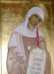Αποστόλων σύσκηνος, Φοίβη θεόφρον, και Χριστού διάκονος, γεγενημένη έπί γης, ενδιαφέροντα ούρανοίς καθικέτευε, ύπέρ των πίστει τιμώντων την μνήμην σου.