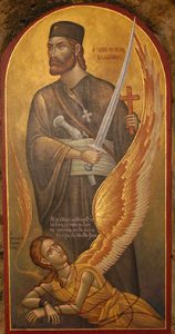 -Πήγαινε και συ με τους τούρκους, σαν τους θέλεις. Δεν σε παίρνω, εάν δεν δυναμώσης τους Έλληνας να κυνηγήσουν τους τούρκους» Φωτάκου, Απομνημονεύματα, σελ. 205. Η εκκλησία και οι ιερείς της ήθελαν και τους αγίους συμπολεμιστές στους αγώνες του 1821: γι’ αυτό και τον Άγιο Γεώργιο, τον άγιο Δημήτριο τον Παντοκράτορα και τους Αρχαγγέλους Μιχαήλ και Γαβριήλ στο ιερό βήμα, στων ναών τις αγιογραφίες μας παρουσίασαν – παρέστησαν να ομοιάζουν όχι τόσο με την παραδεδομένη μορφή, αλλά με μορφές νεοελλήνων πολεμιστών.