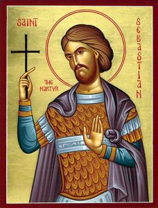 Ο Άγιος Σεβαστιανός γεννήθηκε στα Μεδιόλανα της Ιταλίας, το 250 με 256 μ.Χ. Οι γονείς του τον ανέθρεψαν με μεγάλη χριστιανική επιμέλεια. Καθώς ήταν και από γένος διακεκριμένο, είλκυσε την εύνοια του αυτοκράτορα Καρίνου, που γρήγορα τον ανέδειξε σαν στρατιωτικό. Έπειτα, ο Διοκλητιανός τον έκανε αρχηγό του πρώτου συντάγματος των πραιτοριανών.