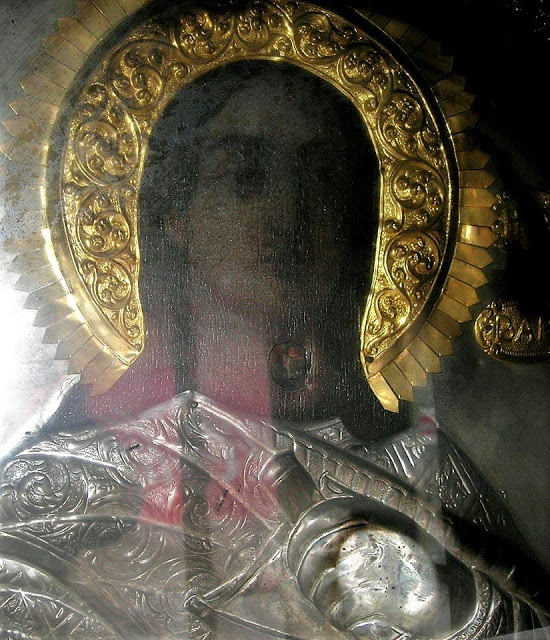Στη φωτογραφία της εικόνας διακρίνεται στο λαιμό το “τραύμα” από τη σφαίρα.