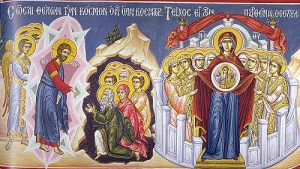 Χαῖρε, σκηνὴ τοῦ Θεοῦ καὶ Λόγου· χαῖρε, Ἁγία Ἁγίων μείζων.