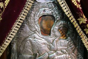 Σ’ ένα μέρος χθες το βράδυ, έγινε ένα συναπάντημα θεϊκό. Ήταν μια Παναγιά, η Παναγία η Ντινιούς, κρυμμένη σε μια ρεματιά με ψηλά πλατάνια. Την έφερε εκεί και την θρόνισε στο παλιό μετόχι της Φλαμουριάς, ο Άγιος Συμεών ο Ανυπόδητος και μονοχίτων, δώρο από τον Σουλεϊμάν για την θεραπεία της κόρης του. Η ιστορία λέει, πως του άνοιξε μια παλιά αποθήκη, και τον έβαλε να διαλέξει, κι εκείνος διάλεξε αυτήν την γλυκομάτα από τον παλιό ναό της Αγίας Παρασκευής στην Πόλη, που κρατάει από τα χρόνια της Εικονομαχίας. Κι αυτή σαν άλλη «γλαυκώπις Αθήνη», μένει ήσυχα-ήσυχα εδώ από τότε, και προστατεύει τους πιστούς βάζοντας πάντα μπροστά το μέτωπό της, και τους χαιρετάει, και τους καταπραϋνει, βγάζοντας μέσα από τον κόρφο της σύννεφα-σύννεφα το μύρο, σαν γάλα μητρικό. Χθες γιόρταζε και μυρόβλυζε, μαζί με την Αγία Παρασκευή, την παλιά της ξενίστρα. Από τη μια μεριά λοιπόν ήταν θρονιασμένη δίπλα της η Αγία Παρασκευή, με την εικόνα της ολόσωμη, και το λείψανό της, μια παρουσία, πες πλήρης. Κι από την άλλην είχε συντροφιά τον Άγιο Παντελεήμονα, δυό φάλαγγες απ’ το χεράκι του, μέσα σε γάντι χρυσό, φερμένες κειμήλιο πολύτιμο από την παλιά Σινασσό της Καππαδοκίας. Κι εκείνος όρθιος, παλληκαράκι στα καλύτερά του, φρουρός, με το νυστέρι του για όπλο, και σήκωνε το χέρι του, κι ευλογούσε.