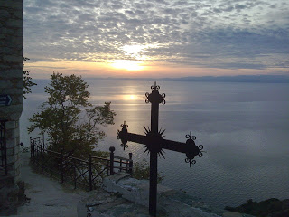 -Κάπου ἐδῶ, καί μοῦ ἔδειχνε τήν κορυφή τοῦ Ἄθωνα.