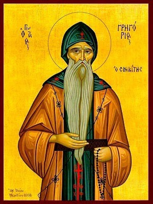 Ο Όσιος Γρηγόριος ο Σιναΐτης οφείλει την επωνυμία του στο όρος Σινά, όπου έλαβε το μοναχικό σχήμα. Γεννήθηκε το έτος 1255 μ.Χ. στο χωριό Κούκουλο, πλησίων των Κλαζομενών της Μικράς Ασίας (αρχαία πόλη που βρισκόταν 40 χιλιομ. ΝΔ της Σμύρνης), από ευλαβείς και πλούσιους γονείς, από τους οποίους, παράλληλα με τους ευσεβείς διδασκάλους του, έμαθε τα πρώτα ιερά γράμματα. Κατόπιν πήγε στην Κύπρο, όπου έζησε για μικρό χρονικό διάστημα κοντά σε κάποιον ενάρετο μοναχό και έγινε και ο ίδιος δόκιμος και στη συνέχεια μετάβη στο όρος Σινά. Εκεί έλαβε τη μοναχική κουρά και έζησε ασκώντας την υπακοή και την ταπεινοφροσύνη, με αυστηρή νηστεία, αγρυπνία και προσευχή. Από το Σινά αναχώρησε για τα Ιεροσόλυμα, ως επισκέπτης και προσκυνητής του Παναγίου Τάφου και των λοιπών προσκυνημάτων της Παλαιστίνης και κατόπιν ήλθε στην Κρήτη, στους Καλούς Λιμένες, όπου διδάχθηκε τη νοερά προσευχή από τον ερημίτη Όσιο Αρσένιο τον Αγιοφαραγγίτη (βλέπε 14 Ιουλίου).