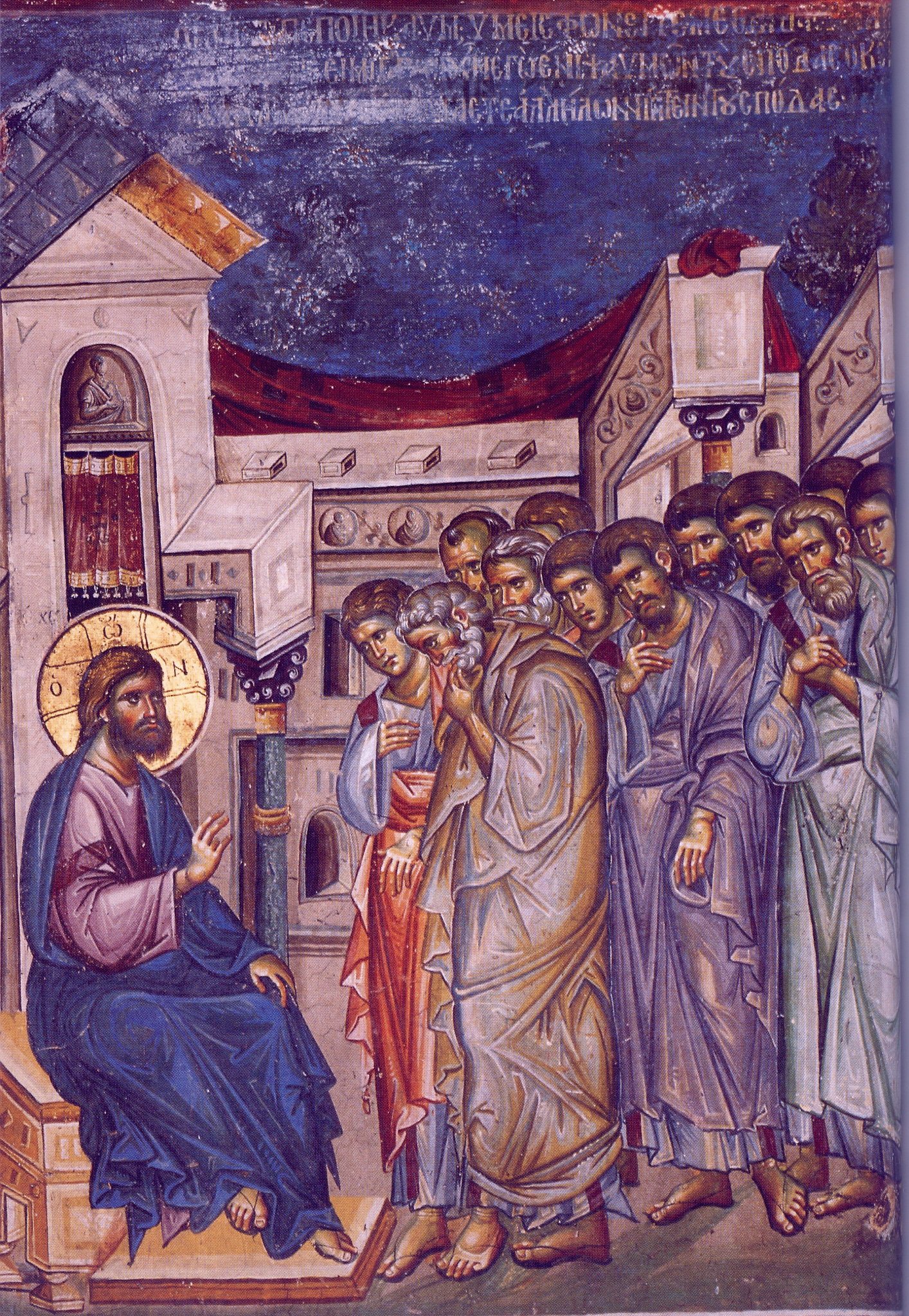 Ο Χριστός ανεβαίνει στα Ιεροσόλυμα για τελευταία φορά. Καθ’ οδόν προλέγει στους μαθητές του τα όσα θα του συμβούν. Ότι δηλαδή θα συλληφθεί, θα μαστιγωθεί, θα εμπαιχθεί, θα εμπτυσθεί, θα φονευθεί, αλλά και θα αναστηθεί την τρίτη μέρα από τον θάνατό του. Δύο από τους μαθητές του, συγγενείς του, ο Ιάκωβος και ο Ιωάννης, παιδιά του Ζεβεδαίου και της Σαλώμης, κόρης πιθανόν του Ιωσήφ, σαν να μην κατάλαβαν τίποτε, ζήτησαν από τον Χριστό να τους δώσει, όταν γίνει βασιλιάς, τα πρώτα αξιώματα. Μα ο Χριστός, αντί για μεγαλεία, τους υποσχέθηκε μόνο «ποτήριον θανάτου» και βάπτισμα μαρτυρίου (Κυριακή Ε΄ Νηστειών).