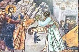 Όταν έμεινε με τους μαθητάς Του, μόνοι έμειναν, ερώτησαν οι εννέα μαθηταί: «Γιατί δεν μπορέσαμε εμείς να βγάλομε το δαιμόνιο;». Και ο Κύριος τους απήντησε: «Διὰ τὴν ἀπιστίαν ὑμῶν». «Ένεκα της απιστίας σας δεν μπορέσατε να βγάλετε το δαιμόνιο».