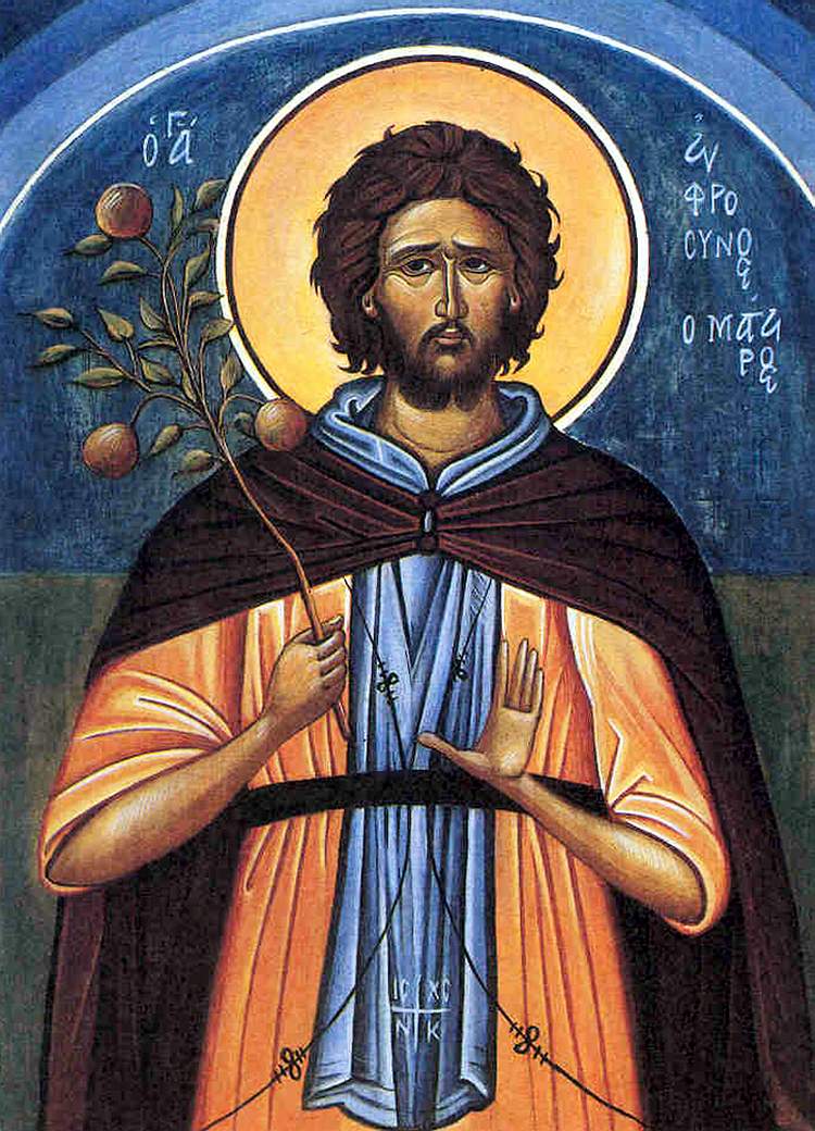 Ευφροσύνης μέτοχος της ουρανίου, γεγονώς Ευφρόσυνε, τη ισαγγέλω σου ζωή, ώφθης Αγγέλων ισότιμος, μεθ’ ων δυσώπει, υπέρ των τιμώντων σε.