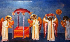 Αναθεωρώντας δε με μεγάλη έκπληξι και χαρά την υπερκόσμια εκείνη ωραιότητα, είδα ένα ωραιότατο παλάτι… όταν δε πλησίασα κοντά βλέπω με πολλή αγαλλίαση τον πατέρα μου Δημήτριον, λαμπροφόρο και γεμάτον όλο φως, ο οποίος εστέκετο μπροστά σε εκείνη την πόρτα του παλατιού, και αφού με ατένισε με πατρική στοργή και την γνωστή του επιείκεια και πραότητα, μου είπε: «πως ήλθες εδώ παιδί μου;» εγώ δε τον απήντησα, «και εγώ, πατέρα μου, απορώ, διότι όπως βλέπω δεν είμαι άξιος δια τον τόπο. Αλλά πες μου, πατέρα μου, πως ευρίσκεσαι εδώ και σε ποιόν ανήκει το παλάτι αυτό;». Εκείνος δε με πολλή φαιδρότητα μου είπε: «Η άκρα του Σωτήρος ημών αγαθότης, δια πρεσβειών της Κυρίας ημών Θεοτόκου, εις την οποίαν είχα, όπως είναι γνωστόν, μεγίστην ευλάβειαν, με ηξίωσε να καταταχθώ εις το μέρος αυτό. Εις αυτό δε το παλάτι ήθελον είσελθη σήμερον, αλλ’ επειδή ο οικοδόμος αυτού έβγαλε σήμερον το δόντι του και δεν ετελείωσαν αι 40ντα ημέραι της οικοδομής αυτού, δι’ αυτό αύριο θα εισέλθω».