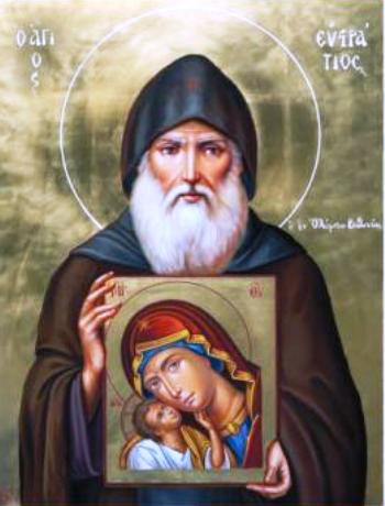 Εν Ολύμπω Βιθυνίας τη ασκήσει διέλαμψας, και ειρηνικώς Θεορρήμον, προς Θεόν εξεδήμησας· τα βέλη τα πεπυρωμένα των Εικονομάχων εναπέσβεσας, και προστάτης ανεδείχθης, της ομωνύμου Νήσου, Θαυματουργέ Ευστράτιε. Χαίροις της εγκρατείας ο εσμός· χαίροις κρουνός ιάσεων· χαίροις ο αγιάσας το Λαδά τη εμφανίσει Σου.